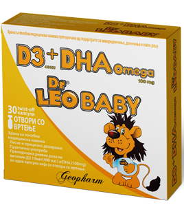 DrLEO® BABY D3 + DHA Omega 100mg е храна за посебна медицинска намена препорачана од европските педијатри за новороденчињата, доенчињата и малите деца.