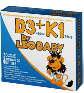 Dr LEO® BABY D3+K1 е храна за посебна медицинска намена препорачана од европските педијатри за предвремено родени и доносени бебиња и доенчиња на исхрана со мајчино млеко.