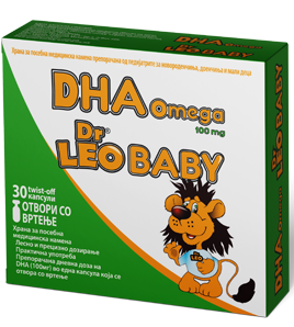 Dr LEO® BABY DHA Omega 100mg е наменет за диететско регулирање на нарушена функција на видот-ретинопатија.